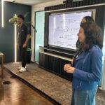 Inicialmente, uma pessoa da dupla atuava como gestor de conta, apresentando o serviço, enquanto a outra desempenhava o papel de cliente, anotando pontos críticos e sugestões de melhoria. Na segunda fase, as duplas foram realocadas e os papéis invertidos, permitindo que todos os participantes experimentassem ambas as funções.